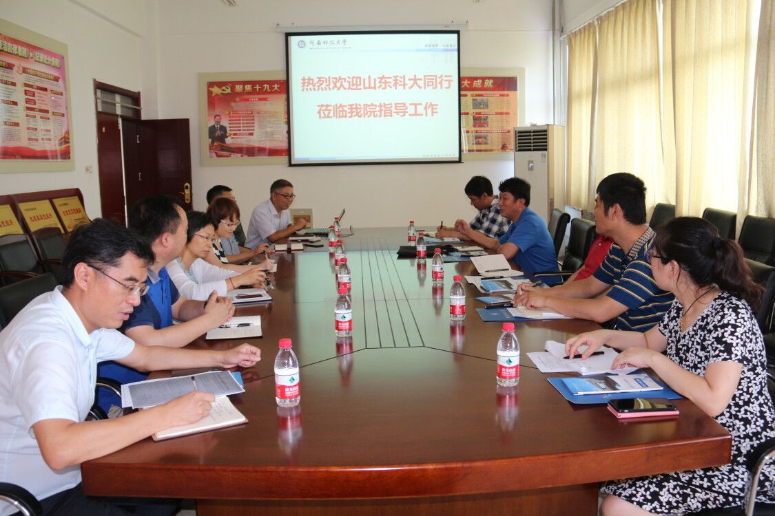 5日下午,王晓东一行与在洛阳指导学生实习的金属材料系主任夏鹏成、党支部书记曹梅青会合,到河南科技大学yL23411永利官网登录参观调研工程教育认证工作。王晓东简要介绍了山东科技大学yL23411永利官网登录的基本情况和参观调研的目的。河南科技大学yL23411永利官网登录副院长田保红代表学院对王晓东一行的到来表示热烈欢迎,详细介绍了河南科技大学yL23411永利官网登录的基本情况和学院进行工程教育认证的经验做法。副院长李继文、韩华,党委副书记段文杰,系主任贾淑果等,结合各自分管的工作,分别介绍了开展工程教育认证需要做好的工作和注意事项。田保红等还陪同参观了实验室、资料室、荣誉展厅等,就进行专业教育认证进行了深入交流。