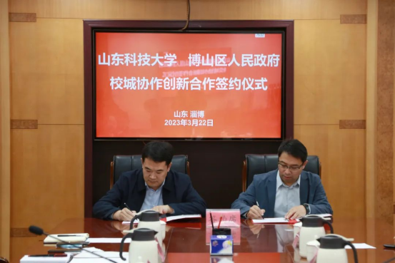 座谈会上,双方签订了《山东科技大学与博山区人民政府校城协作创新合作协议》,李辉平介绍了学院科研情况,张刚介绍了博山区产业发展情况,双方围绕产学研合作、科技成果转化、科技人才培育、科技平台建设等重点领域进行了深入交流,并达成合作意向。