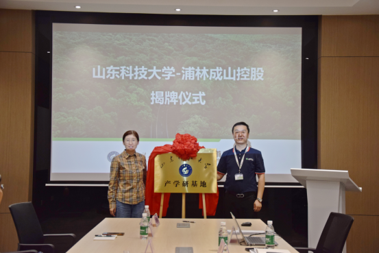 在浦林成山控股有限公司,学院与企业签订合作协议和捐赠协议,并为产学研基地、就业创业基地揭牌。