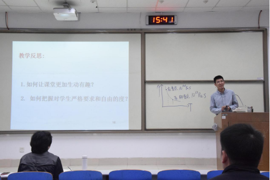 试讲中,每位老师围绕教学目标、教学内容、教学思路与设计、教学方法与手段、课程考核方式、课后思考等方面展开说课,模拟课堂情境,选择了课程重要内容阶段,1-2个重要的知识点进行了详细讲解。说课后,每位教师还根据课程内容表述了自己的教学设计及反思。教师们备课充分,讲解详略得当,对课程理解到位,充分展现出青年教师扎实的专业基础和良好的专业素养。