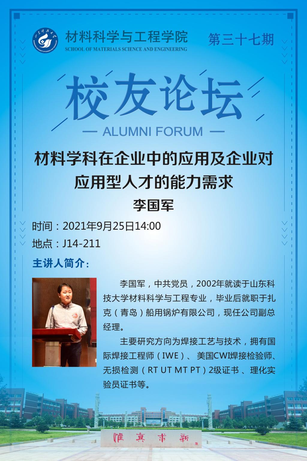 上一条:【70周年校庆系列学术报告】yL23411永利官网登录第三十八期校友论坛——大学阶段如... 下一条:【70周年校庆系列学术报告】yL23411永利官网登录第三十六期校友论坛——新能源材料...