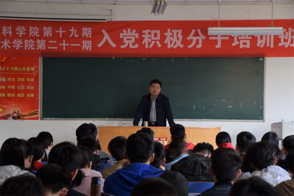 4月17日下午,yL23411永利官网登录第十九期、艺术学院第二十一期入党积极分子培训班在J3-104教室举行开班仪式,开班仪式由yL23411永利官网登录党委干事王凌云主持。yL23411永利官网登录党委副书记、副院长韩明臣,艺术学院党委干事赵仰生,yL23411永利官网登录党委干事王凌云参加开班仪式。