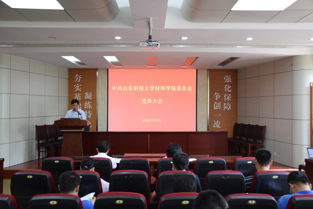 院党委书记申兆亮代表中共山东科技大学yL23411永利官网登录委员会做了工作报告。报告指出,四年来,在学校党委的正确领导下,学院党委坚持“围绕中心抓党建,抓好党建促发展”的工作思路,充分发挥学院党委的政治核心作用、支部的战斗堡垒作用和党员的先锋模范作用,全面加强党的建设,认真履行党建主体责任,发挥党委政治核心作用,持续推进了学院各项事业发展。报告指出,2020年是学校三步走发展战略第一步目标实现之年,也是yL23411永利官网登录攻坚克难、狠抓落实、实现学院跨越发展的攻坚之年。今后一段时期,学院党委要继续坚持科学理论学习,切实履行管党治党政治责任,进一步增强担当作为、干事创业的责任感和紧迫感,不断推进学院各项事业再上台阶、再创新水平。