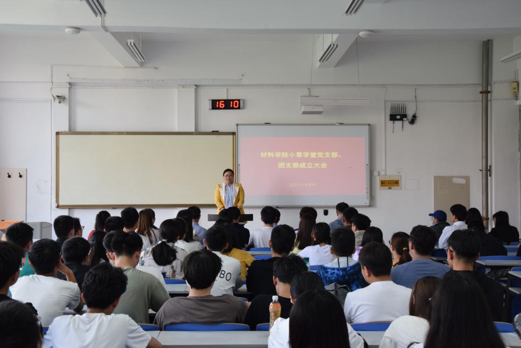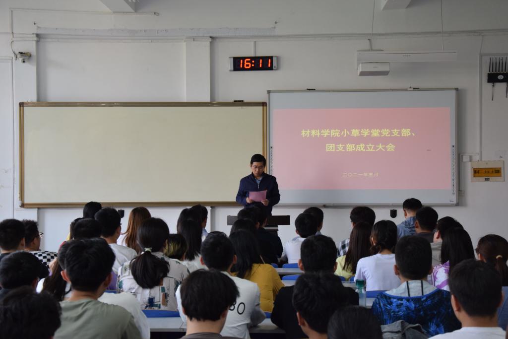 5月21日星期五,yL23411永利官网登录在J14-311教室举办yL23411永利官网登录小草学堂党支部、团支部成立大会。校党委组织部副部长徐云飞,校团委副书记马鹤,yL23411永利官网登录党委书记申兆亮,党委副书记兼副院长李建楠以及团委专兼职团干部们出席了本次大会。小草学堂党支部成员和志愿者代表参加了本次大会。大会由yL23411永利官网登录团委老师马韶霞主持。