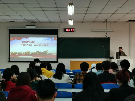 4月25日,艺术学院党委副书记兼副院长卫雪讲授了党的统一战线的相关知识。她以建党初期、土地革命时期、抗日战争时期、解放战争时期、新时期五个时期的统一战线为脉络,分别讲述不同时期统一战线的性质、任务及其时代特点,明确统一战线是团结朋友、打击敌人的总体动态发展。卫雪指出每位学员要树立坚定的理想信念和爱国报国责任感,做新时代有理想、有本领、有担当的新青年,要严格要求自己,早日向组织靠拢。