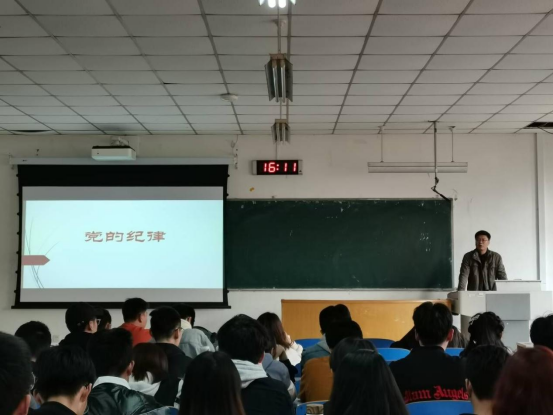 4月27日,校纪委综合处处长白斌讲授“党的纪律”,从什么是党的纪律、党的纪律的特点、必要性及如何做四个方面展开讲解。他着重讲解了党的纪律的四个特点,以及六大纪律中的政治纪律,它要求各级党组织和党员必须在政治方向、政治立场、政治观念上同党中央保持高度一致。他鼓励每位同学增强对党的纪律的认识,并在日常生活中带头遵守、执行党的纪律,起到先锋模范作用。