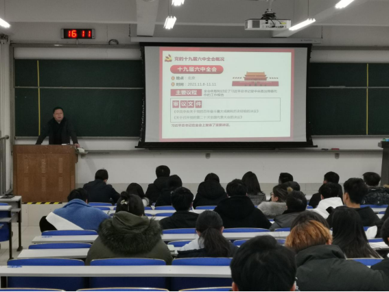 李建楠最后要求同学们要认真学习党的十九届六中全会精神内涵,不断提高自身理论素养和政治素质,坚定理想信念,珍惜青春时光,练就过硬本领,做党和国家的栋梁之才。(通讯员:钟文建)