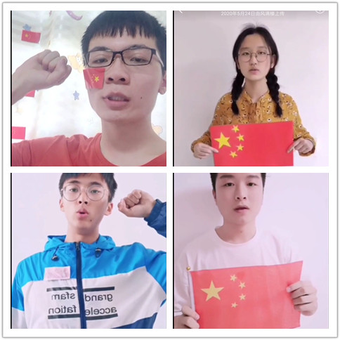 学生通过自发录制爱国宣誓视频,经社会实践部进行审核后,将参赛作品发布到微信进行投票选拔。录制视频均以爱国、青春等积极向上的内容为主旋律,拍摄者衣着整洁、神情庄重严肃。其中,部分学生还自发绘制了国旗样式的爱国背景板,手拿国旗等道具,抒发对伟大祖国的赞美,表达奋发向上报效祖国的情怀。