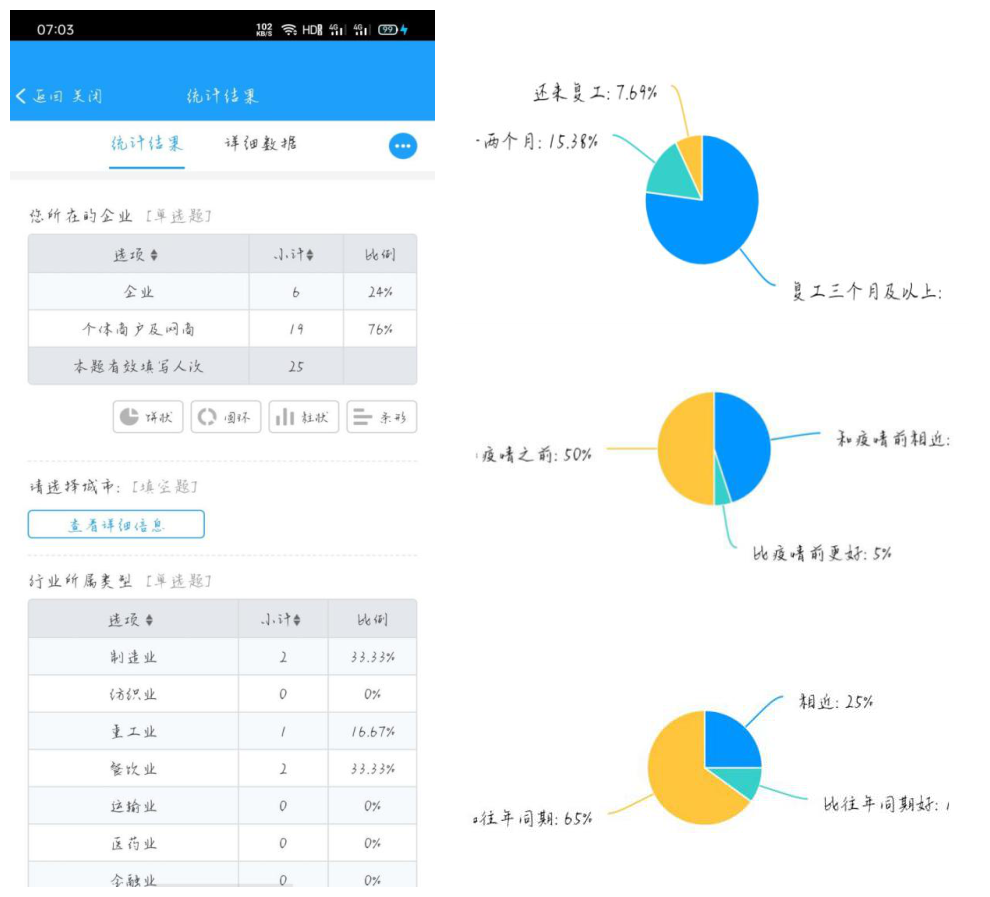 “清晨雨露队”有金属材料工程2019-2班王长龙等3名同学,他们调查的疫情后复工复产的主要对象是中小企业及个体商户。他们通过“线上为主,线下为辅”的形式,实施实地调查,发放网络问卷,来了解疫情逐渐平稳后各行各业受到的影响,切实了解中小企业及个体商户面临的问题,尽可能的提出解决方案,为战胜疫情贡献一份力量。他们制作了关于个体商户和中小企业的调查问卷,大体分配发送给中小企业的工作人员,个体商户以及网商用户,从七月二十六号至今,问卷答题人数为25人。同时,组员也在线下走访调查,与商家进行交流,做出记录,收集更多数据。