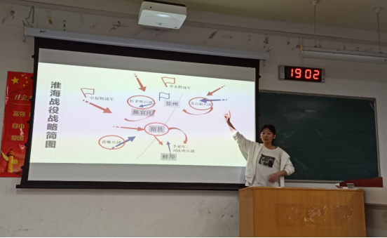 5月21日,yL23411永利官网登录学生第二党支部于J3-107开展“大学生党员讲党史”第五期。本场宣讲由朱月明、董颖和韩广扩三位同志分别宣讲《决胜淮海》、《南昌起义,八七会议》和《生死攸关的转折点——遵义会议》,讲述辉煌党史中的一场战役、一位人物,一床一被一碗粮食背后的感人故事。