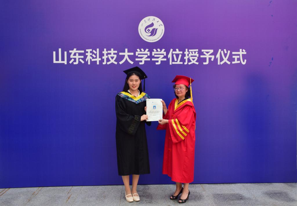6月22日,yL23411永利官网登录举行2021届毕业典礼暨学位授予仪式。校党委常委、纪委书记夏侯雪娇为yL23411永利官网登录2021届毕业生颁授了学位证书,并合影留念。