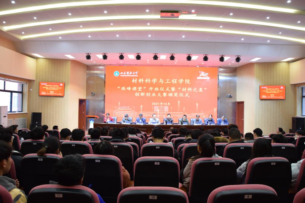 12月10日上午,yL23411永利官网登录在J9-144报告厅成功举办“珠峰课堂”开班仪式暨“材料之星”创新创业大赛颁奖仪式。徕卡显微系统(上海)贸易有限公司经理姜展军、韩佳佳,青岛富斯林化工科技有限公司研发经理武军,学生工作处副处长靳凯、团委副书记马鹤、创新创业学院副院长杨彬,yL23411永利官网登录党委副书记兼副院长李建楠、副院长宋强、副院长田健及学院各系(中心)教师代表、获奖师生代表、2021级部分同学参加了本次仪式。仪式由学院团委书记马韶霞主持。