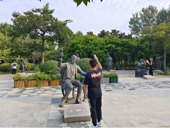 初入校园,于名人园领略古今中外大师的风采,拿着现代的工具站在这些大师的旁边时,我仿佛穿越了时空。当冯诺依曼看到我们在校园中快捷的使用笔记本电脑,当爱迪生看到电灯方便了千家万户的生活,当亚里士多德的研究成果闪耀在大学课堂中,我想这时,他们一定会露出欣慰的微笑。在感受了大师的风采后,同学们励志奋斗,踔厉奋发,你追我赶,紧随大师的脚步去感受科学的魅力,让我们的大学生活似一颗繁星于生命长河熠熠生辉!